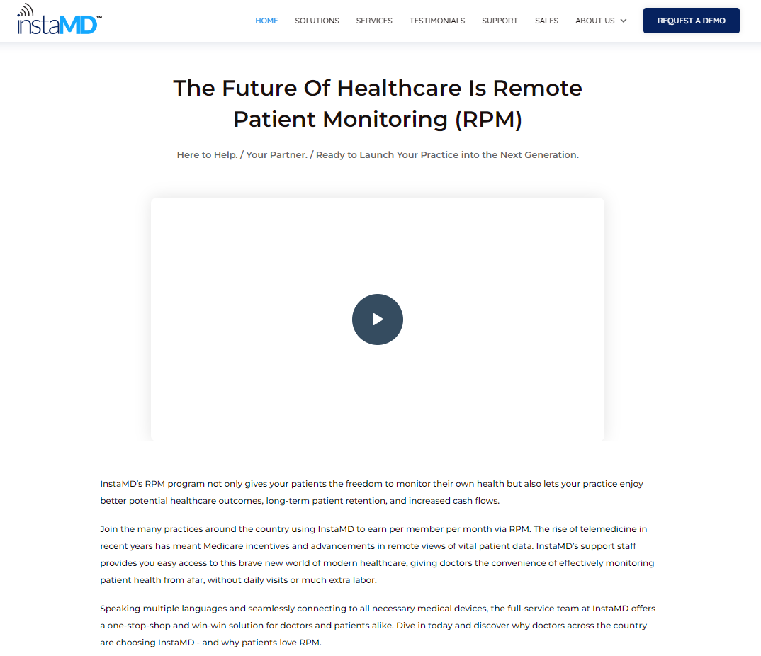 Client work: InstaMD is a telemedicine provider that was co-founded by physicians and specializes in utilizing medical devices and the Medicare program to help connect doctors and their patients with chronic conditions.